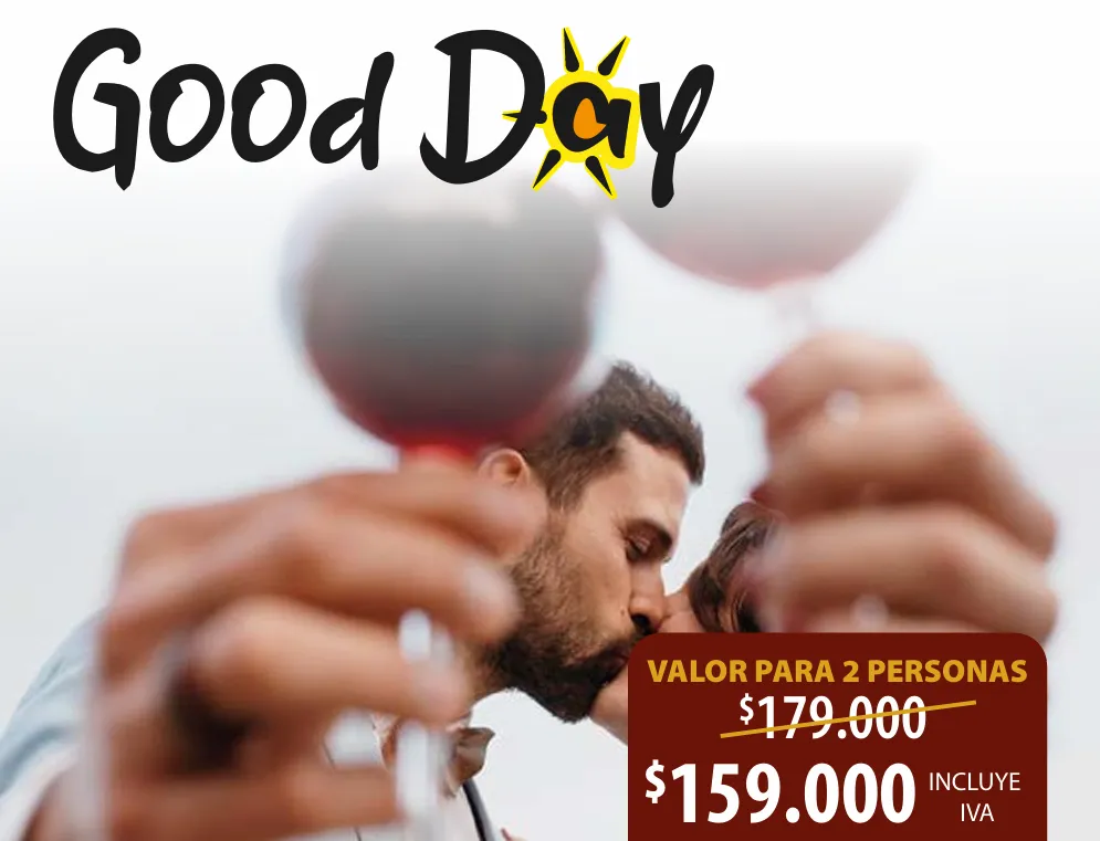 Agrega Almuerzo Adicional: Almuerzo de 2 tiempos sugerencia del chef menú del día (Fondo y Postre más copa de vino o bebida/jugo). Valor almuerzo por persona $30.000. Promoción válida para almuerzos entre 13:30 y 15:30